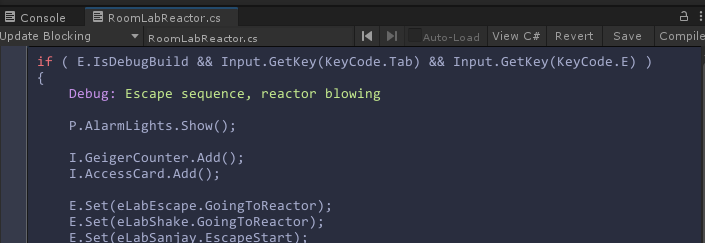 attribute.I also often want a quick debug key to skip to an animation or something in a room. For this I just add a line to check the key is down in UpdateBlocking.